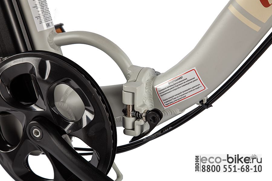 На переднем и заднем колесе установлены механические дисковые тормоза, обеспечивающие эффективное и плавное торможение. Такая система особенно надёжна в условиях городской эксплуатации и обеспечивает безопасность при любой погоде.